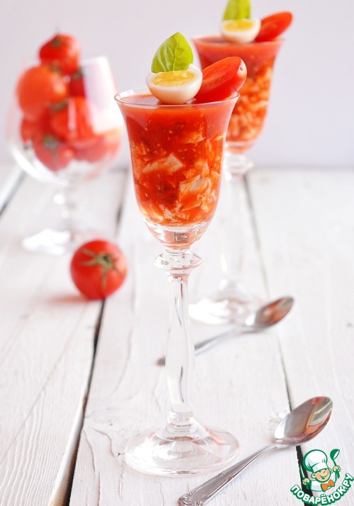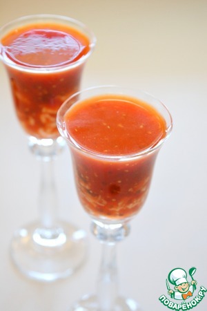 Приправьте томатный сок сладким соевым соусом "Киккоман" и нагрейте до полного растворения желатина
