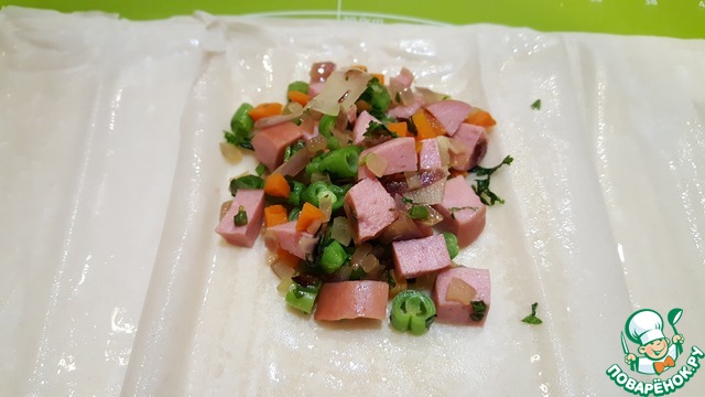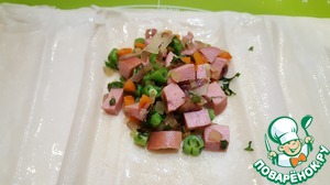 Выложить одну - две ложки начинки на получившуюся полоску теста.