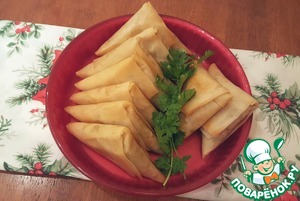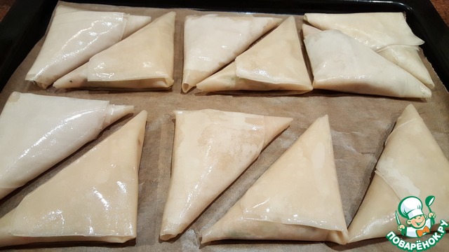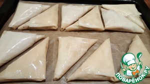 Получаем такие треугольнички. При необходимости, дополнительно смазать маслом пирожки.
