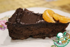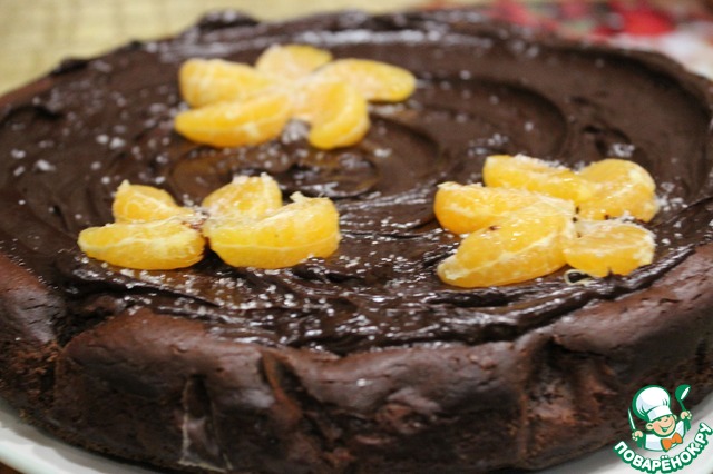 Топим шоколад со сливками до равномерной массы. Можно воспользоваться блендером. Смазываем поверхность чизкейка и украшаем мандаринами. Можно оставить до застывания шоколада, у меня терпения уже не хватило.