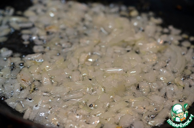 Масло разогрейте в небольшом сотейнике с толстым дном, положите лук, обжаривайте на среднем огне до мягкости, 5 мин.