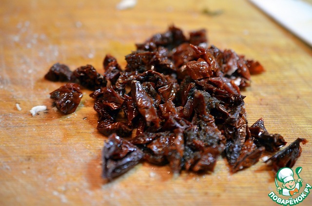 • Вяленые томаты нарезать.