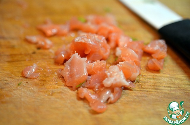 • Рыбу нарезать мелкими кубиками.