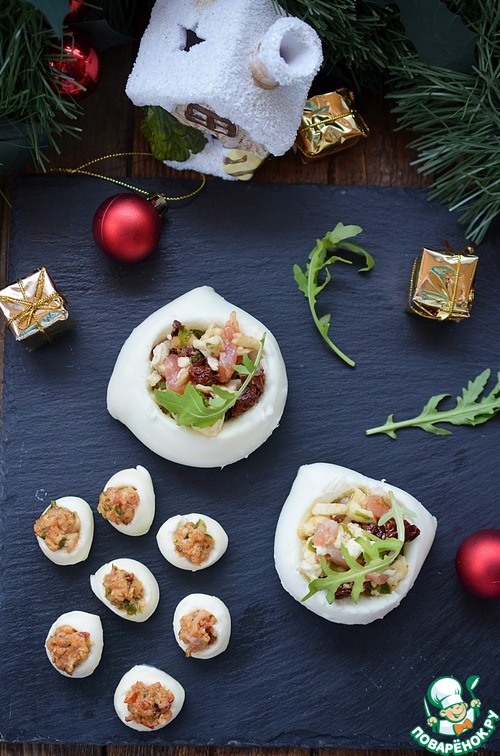 Выкладываем начинку в углубления на сыре.