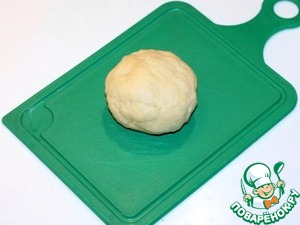• 1. Приготовим тесто для тарталеток. Соединить в миске просеянную муку, щепотку соли, мягкое масло и ледяную воду, замесить тесто. Тесто мягкое, не липнет к рукам и хорошо собирается в шар. Завернуть тесто в пищевую пленку и убрать в холодильник на 1 час.