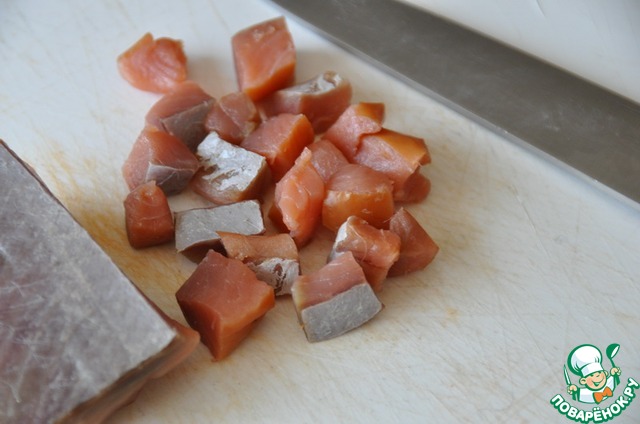 Берём любую копчёную или малосольную рыбу лососёвых пород, у меня - кета.