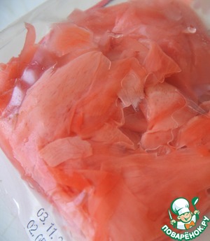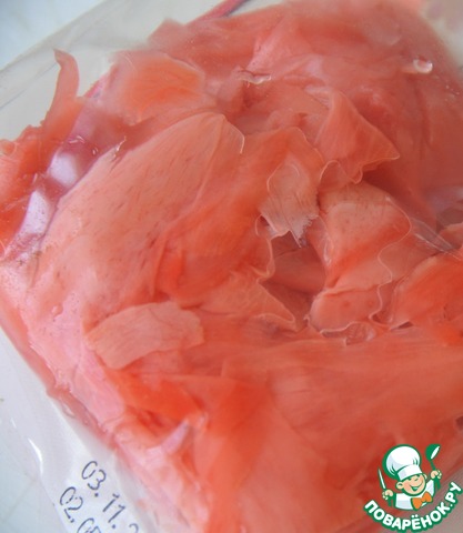 Берём маринованный имбирь. Его можно купить или приготовить самим по рецепту на сайте.