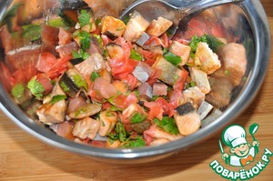 Разделываем на филе и режем мелкими кубиками размером около 1 см.
