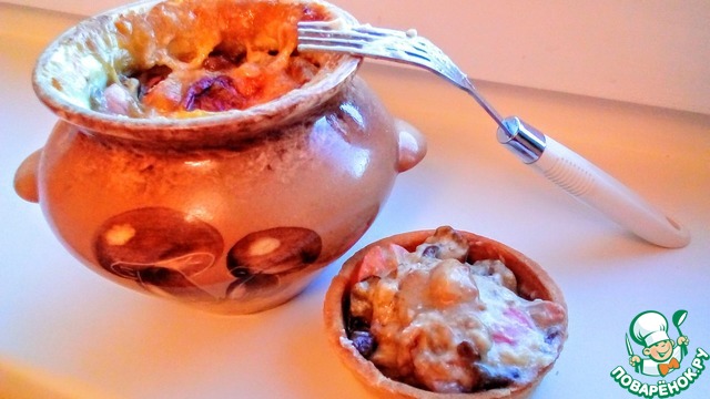 Рецепт «Жюльены с лесными грибами и сосисками»: