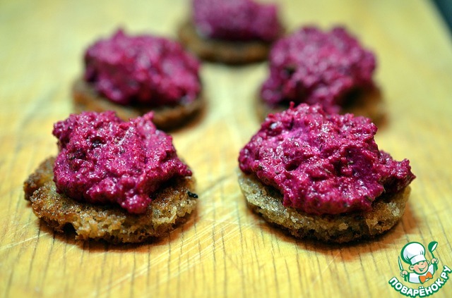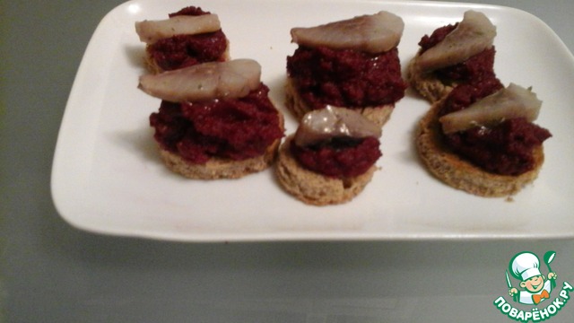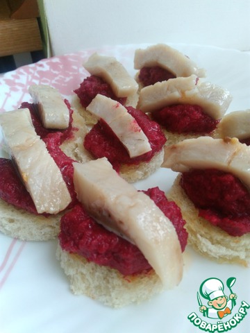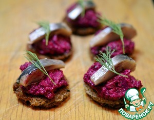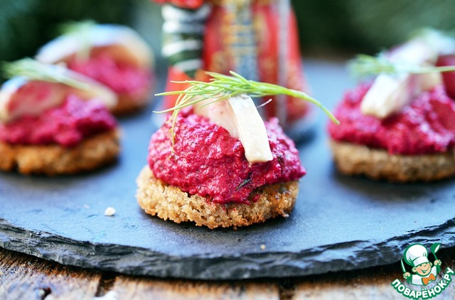 Рецепт «Гренки со свекольным муссом и сельдью»: