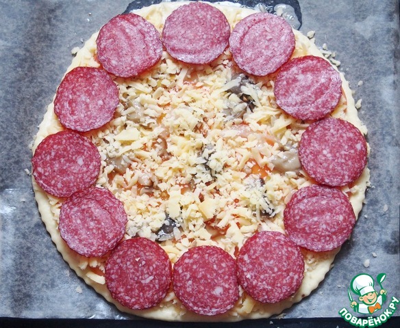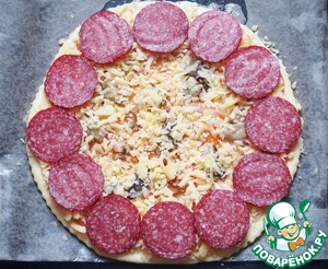 Разложить по кругу кусочки колбасы "Салями по-Черкизовски".