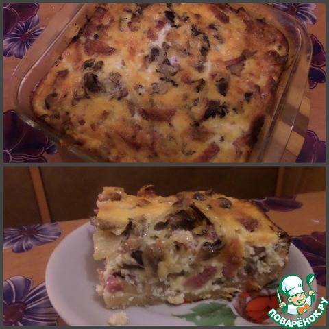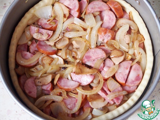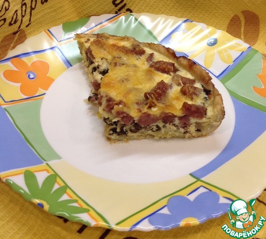 Рецепт «Киш с краковской колбасой и шампиньонами»: