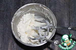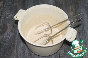 Добавить в получившееся тесто половину белка, мешая хорошо миксером до полного смешивания и однородной массы. Затем добавить вторую половину мучной смеси и хорошо смешать миксером, затем оставшийся белок и опять смешать миксером до однородной массы.