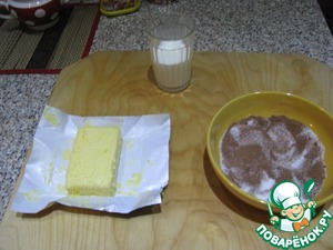 Смешать какао с сахаром, масло размягчить при комнатной температуре, отмерить молоко.