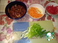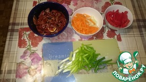 Делал с утиными грудками, но Вы все прекрасно понимаете, что мясо может быть любым и овощи тоже, в зависимости от вкуса.