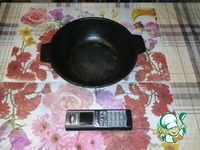 Достался такой казанчик. Просто показать размер. Можно сказать - чугунная сковорода с высокими бортами, но без ручки. Телефон - для сравнения размеров, линейки не нашел. |