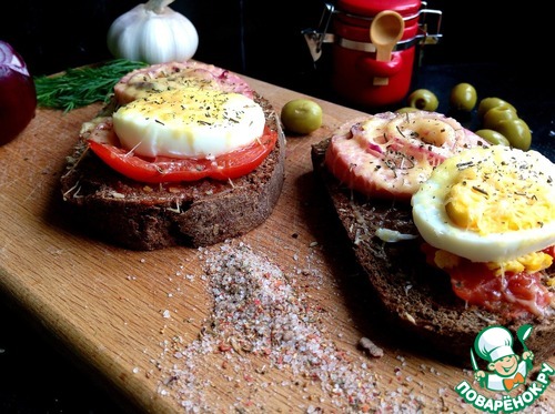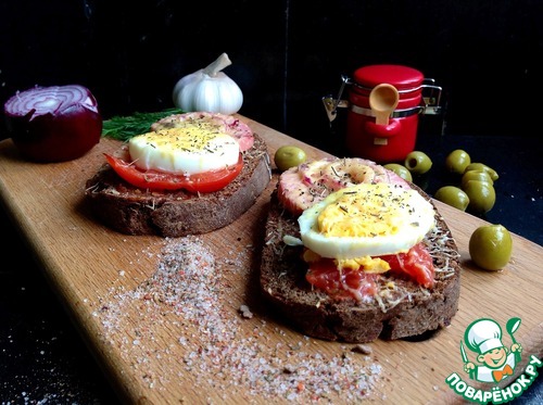 Это скорее не рецепт, а вариант подачи вкусного и ароматного бутерброда на бородинском хлебе. Отличный вариант для поездок и взять с собой в дорогу, или накормить вкусным завтраком своих близких. Угощайтесь!!!