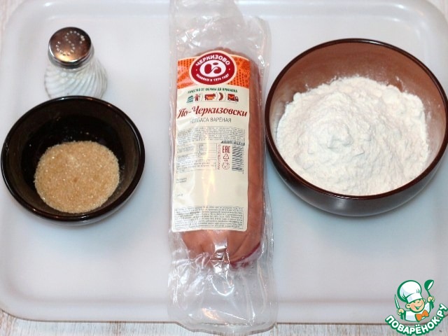 1. Ингредиенты для приготовления Оляпок с вареной колбасой "по-Черкизовски".
