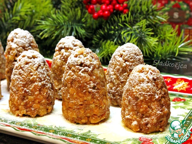 Хочу поделиться рецептом печенья "Шишки". Это один из рецептов, который обязателен на нашем новогоднем празднике. Такое печенье готовлю уже очень много - много лет, всегда получается вкусным и нравится абсолютно всем. Можно приготовить и преподнести в качестве подарка когда идете в гости. Угощайтесь на здоровье!!!