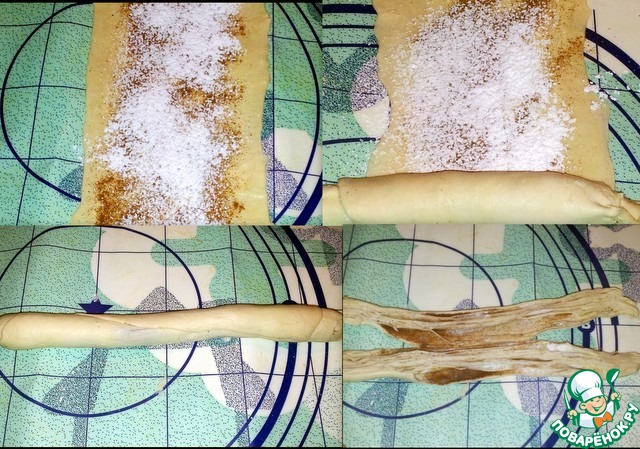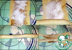 температуры. Размазала его по всему раскатанному тесту. Посыпала корицей,