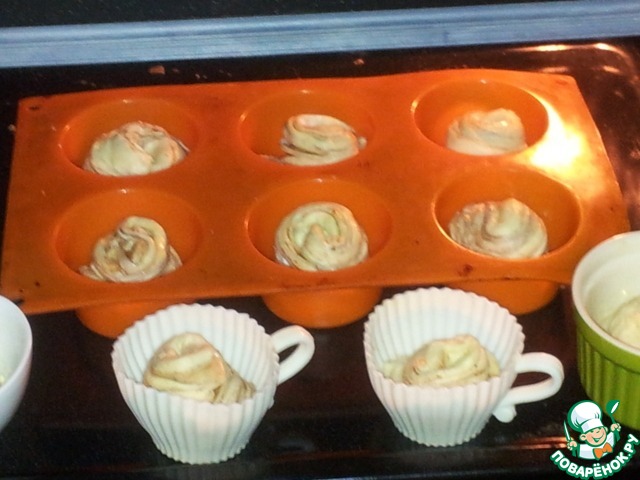 Поместила узелки в ячейки силиконовой формы для кексов.