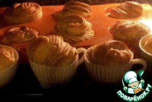 Поставила их в духовку на 10 минут при t 70 градусов. Краффины поднялись, и я переключила духовку на 200 градусов.