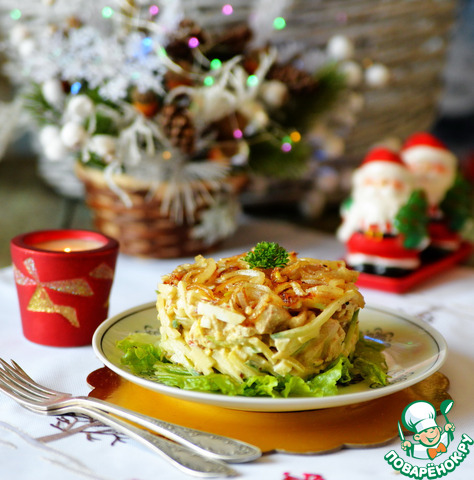 Обжаренный лучок выкладываем на наш салатик и украшаем на свой вкус и цвет :-)