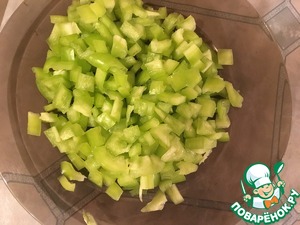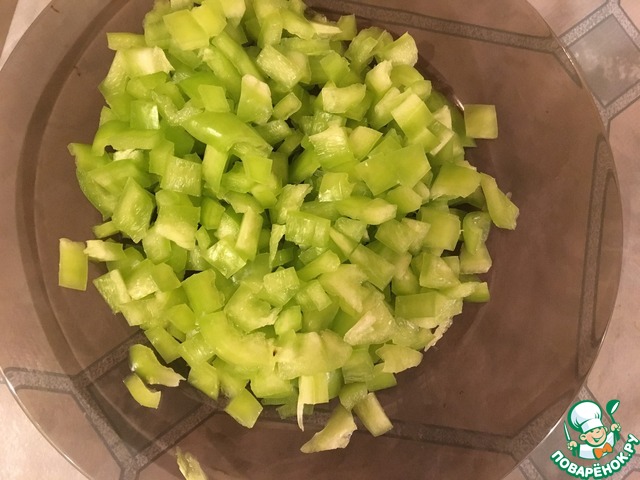• Теперь берём болгарский перец и режем на маленькие кусочки.