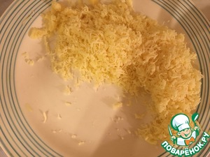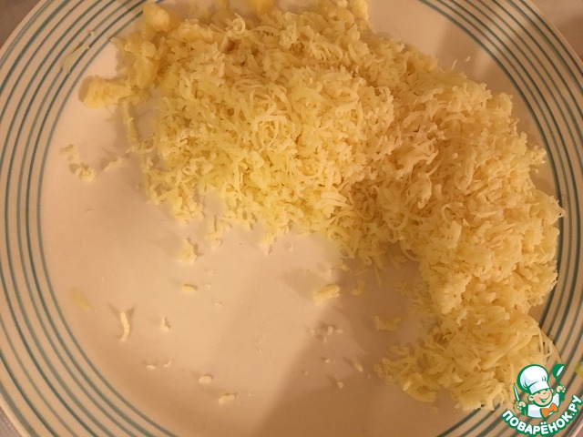 • Сыр натираем на мелкой тёрке.