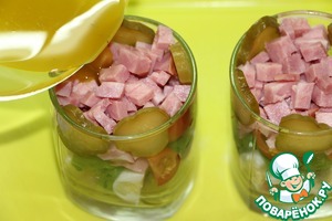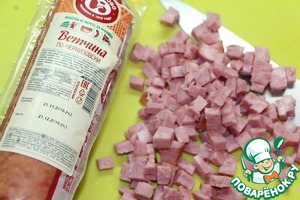 Ветчину порезать крупными кубиками.