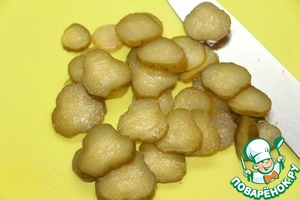 Маринованные огурцы порезать колечками