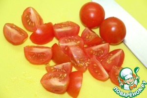 Помидоры черри разрезать на 4 части.