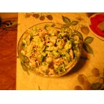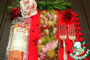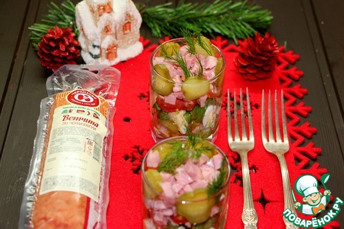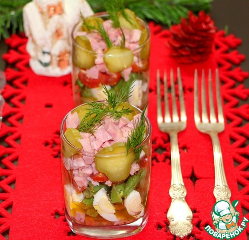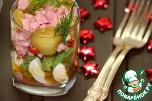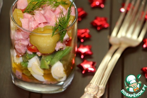 Не люблю когда на праздничном столе стоят полупустые салатники. Как удобно подавать порционно, пусть даже не в креманках, а в самых обычный стаканах. Этот салат давно пользуется успехом в нашей семье. Яркий, не утяжеленный слишком калорийными ингредиентами. Довольно простой, но он порадует вас своим вкусом.
