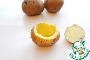 Срежьте верхушку у клубня и чайной ложкой выньте часть мякоти -