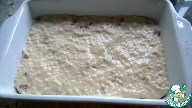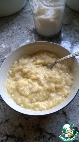 • Берем бананы и разминаем их вилкой в кашу. Колличество бананов расcчитывайте, смотря на размер бананов и формы. Добавляем майонез. Я туда еще чуть свеже-натертого мускатного ореха добавляю. Осторожно с орехом - может забить вкус бананов.