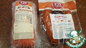 - Колбаса (200г "Охотничья по-Черкизовски", 300г "Варёная по-Черкизовски") — 500 г