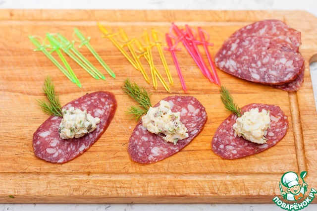 Рецепт «Фаршированные сырокопченые рулетики "По-черкизовски"»: