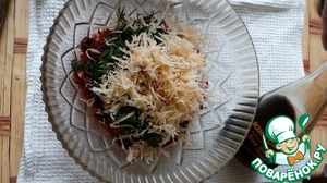 Добавить нарезанный укроп и натертый сыр, соевый соус, перемешать.