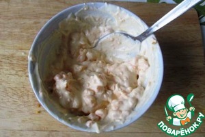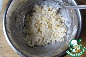Нарезанные яблоки смешиваем с небольшим количеством майонеза, чтобы не потемнели