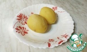 Картофель очистить, положить в холодную подсоленную воду, довести до кипения и варить 15 минут. Затем выставить на холод остывать. Картофель должен быть слегка недоварен.