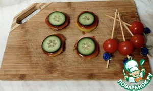 Для второго варианта : на смазанный картофель кетчупом, кладем огурец, помидоры черри одеваем на шпажки.