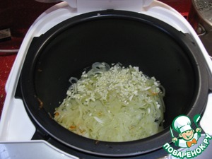 Нашинкованный лук, мелко порезанный чеснок, также потушить на 3 ст. ложках масла