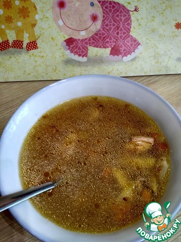 Вынимаем, сварившийся суповой набор, добавляем, в бульон обжаренные овощи и картошку. Пока всё это добро варится, "разбираем рыбу".