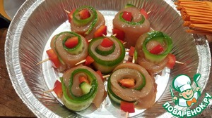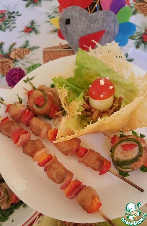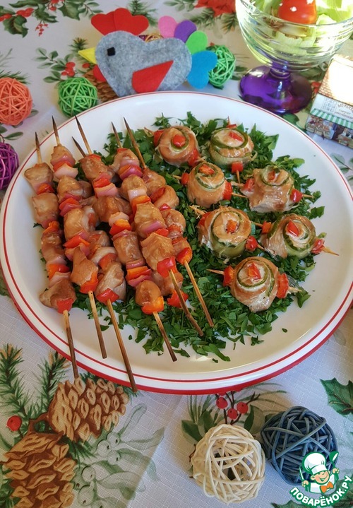 Шпажки вымочить 15 минут в воде, я поленилась и прошу прощенье за фото...