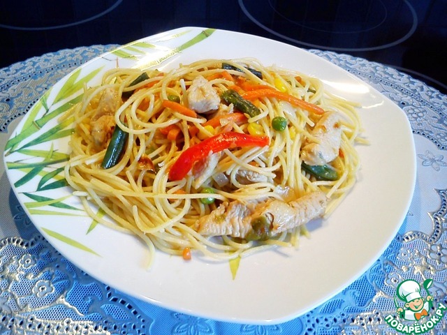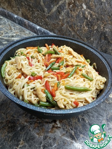 Это очень вкусное блюдо, которое распространено в Азии. Лапша готовится быстро, а выглядит настоящим праздничным блюдом. В неё кладут различное мясо, это может быть свинина, курица или говядина. Овощи также можно использовать по своему вкусу. А заправка придаёт блюду нотку пикантности.
