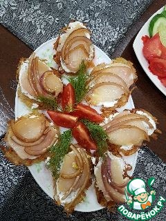 - Форель (любая солёная рыба, отлично сельдь) — 8 ломт.