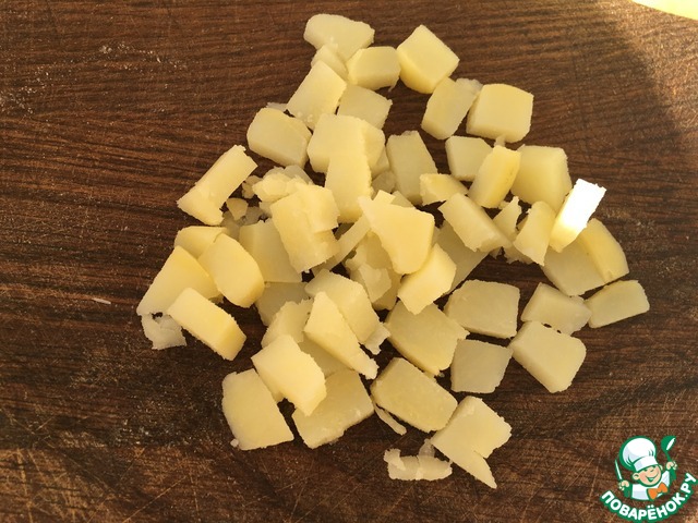 Картофель отварить в слегка солёной воде.