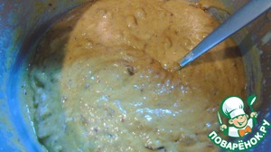 В теплую пивную смесь добавляем яичную, затем добавляем муку и все перемешиваем