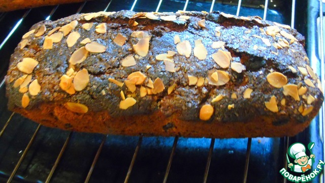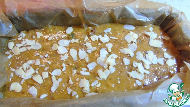 Кексовую форму выкладываем пергаментом и выливаем тесто. Сверху присыпаем миндальными лепестками (опционно) и отправляем в разогретую до 160С духовку на 1,5 часа, но через 1 и 15 минут начинаем проверять зубочисткой