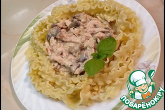 - Паста (либо готовая, либо домашнее тесто на 300 г. муки+3 яйца+2 ч.л оливкового масла) — 300 г
